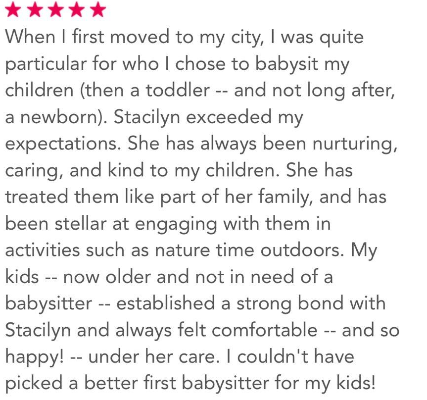We are flexible for different hours. We enjoy singing songs and taking young ones outside in place of the use of TV to entertain.